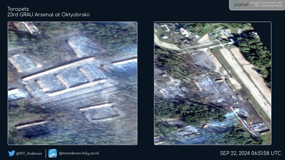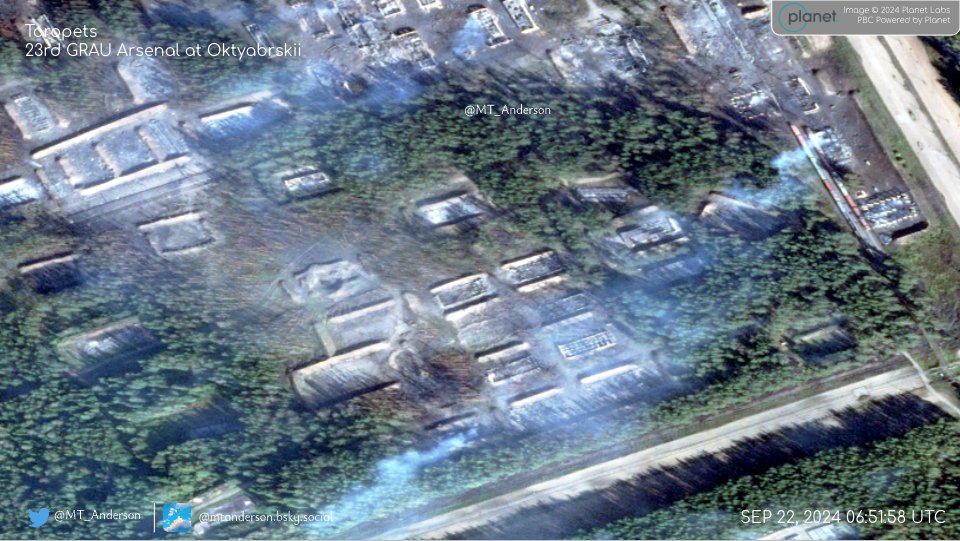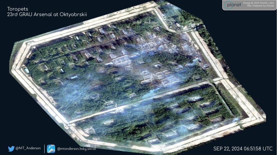 Американский OSINT-исследователь опубликовал новые спутниковые снимки 23-го арсенала Главного ракетно-артиллерийского управления Минобороны России, расположенного вблизи поселка Октябрьской Тверской области.
