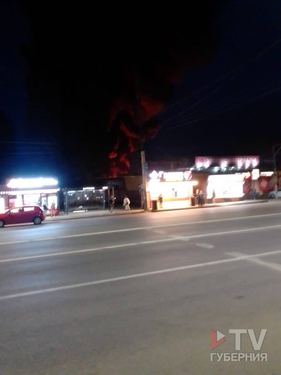На место пожара прибыли 29 пожарных и 9 единиц техники. Из-за того, что полыхающее здание стоит отдельно от других, угрозы распространения огня нет. Цвет дыма эксперты не комментируют. По состоянию 22:30 пожар удалось локализовать, но не ликвидировать полностью. Информация о пострадавших на данный момент не поступала.