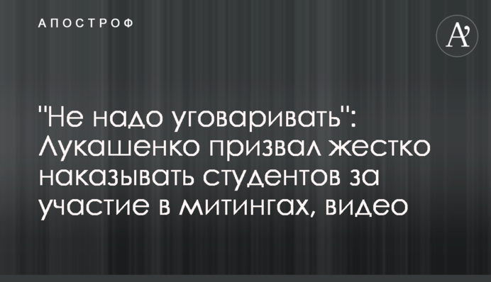 "Пожалуйста, отправьте их, как я говорил, кого в армию, а кого - на улицу. Пусть ходят по улице. Но они должны быть отчислены из вуза. То же самое преподаватели, их тоже единицы, которые гадко себя ведут в вузах", - сказал Лукашенко.