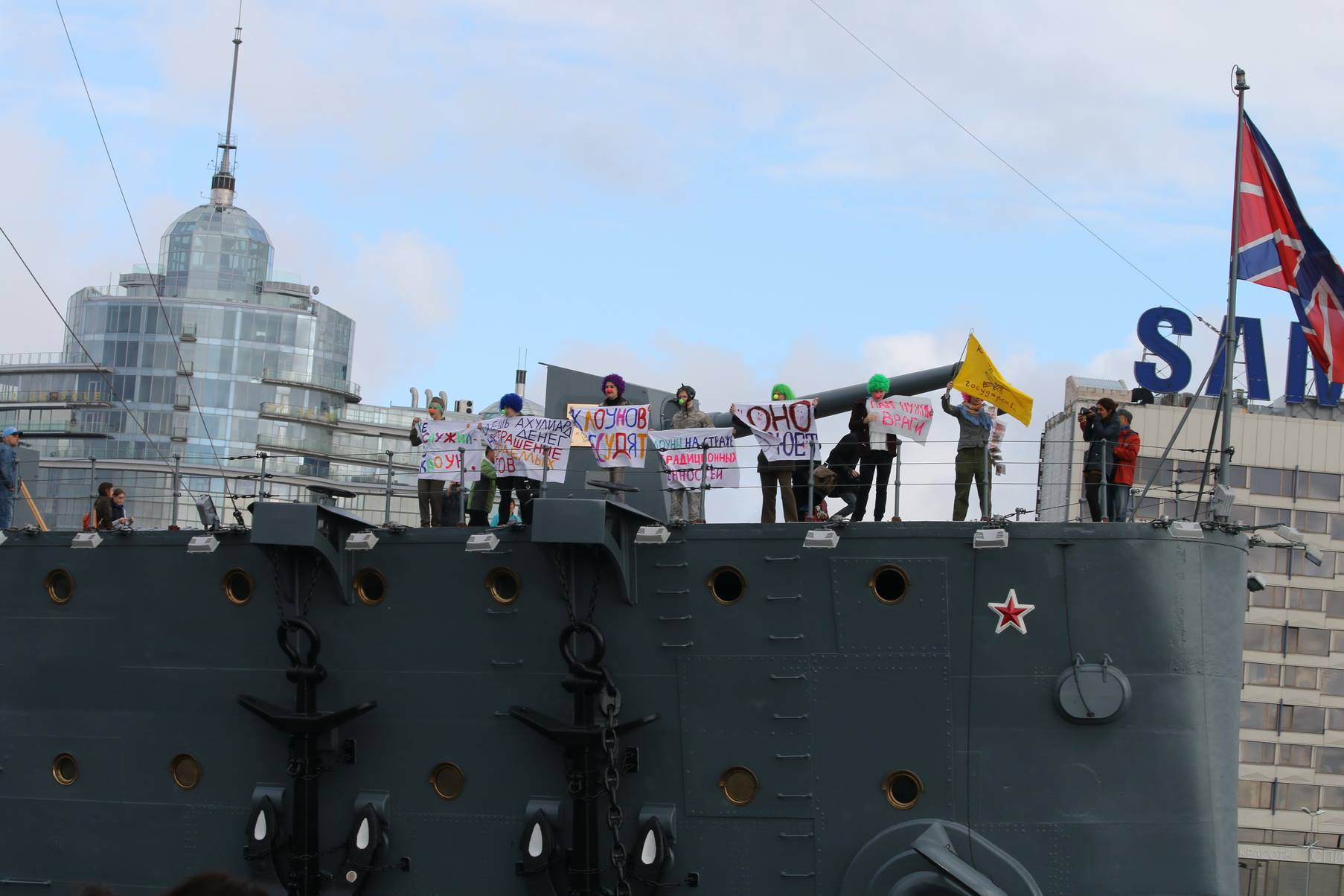 Группа клоунов-милитаристов захватила крейсер Аврора, с требованием увеличить военный бюджет. "Не служил не клоун", "ОНО воюет" pic.twitter.com/10pzQd5kqv