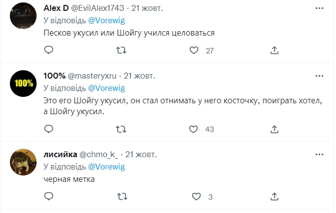 Но больше всего интернет-юзеров удивил странный след на руке президента РФ. Выпуклые вены на руке старого диктатора выглядели, будто его укусили зомби. Кроме того, в сети предположили, что это Шойгу его учил целоваться или же Песков проверял на прочность свои зубы.