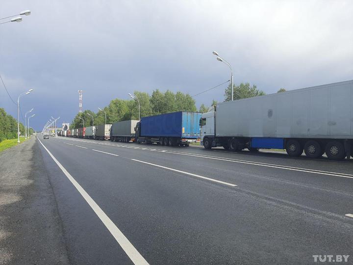 "Километра за четыре до границы с Россией упираемся в колейку с фурами. Большегрузы были с номерами разных стран, но больше всего – белорусских, российских, литовских, польских", - пишут журналисты.