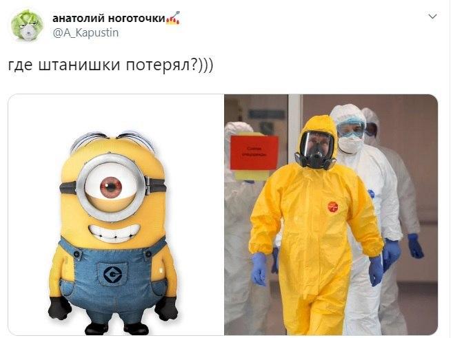 Ярко желтый цвет защитного костюма и маска, закрывающая все лицо, напомнили шутникам персонажа комедийного мультфильма "Миньйоны". Среди образов, которые примеряли на Путина – известные "телепузики" из детской развлекательной программы и небезызвестные покемоны.
