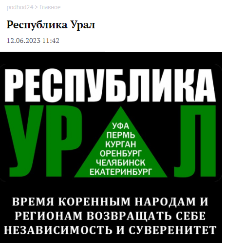 В понедельник, 12 июня, в день России, неизвестные взломали один из региональных сайтов Урала, оставив послание с призывом к созданию своей республики представителям глубинки, которые могут стать "пусковым механизмом" для развала страны-агрессора.
