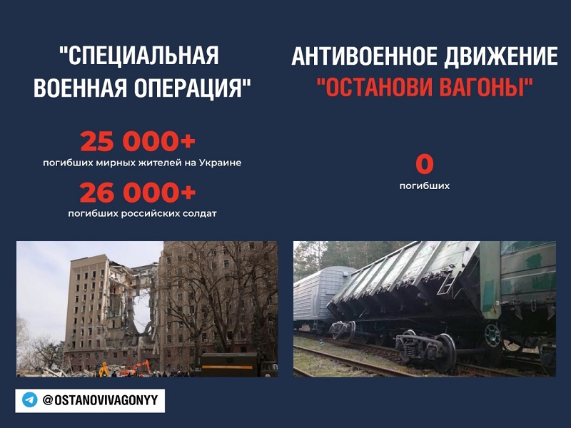 "Власть уже определила, кого надо назвать "террористом" - следовательно, надо нас "умыть кровью", обвинить в сознательном убийстве сотен людей. Все антивоенное движение – это движение ПРОТИВ УБИЙСТВ И КРОВОПРОЛИТИЯ! Но власть готова совершить теракт с сотнями жертв, чтобы обвинить нас. Чтобы не просто дискредитировать антивоенное движение - но уничтожить его на корню. Чтобы рельсовых партизан, которые борются за спасение жизней по обе линии фронта, назвать убийцами и объявить на нас общенациональную охоту", – написали "Останови вагоны" за день до бот-атаки.