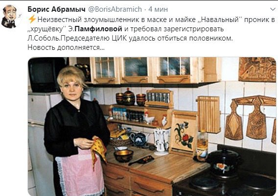 МВД РФ сообщило, что в ночь на 6 сентября в Московской области неизвестный ворвался в дом к главе Центральной избирательной комиссии РФ Элле Памфиловой и ударил ее электрошоком.