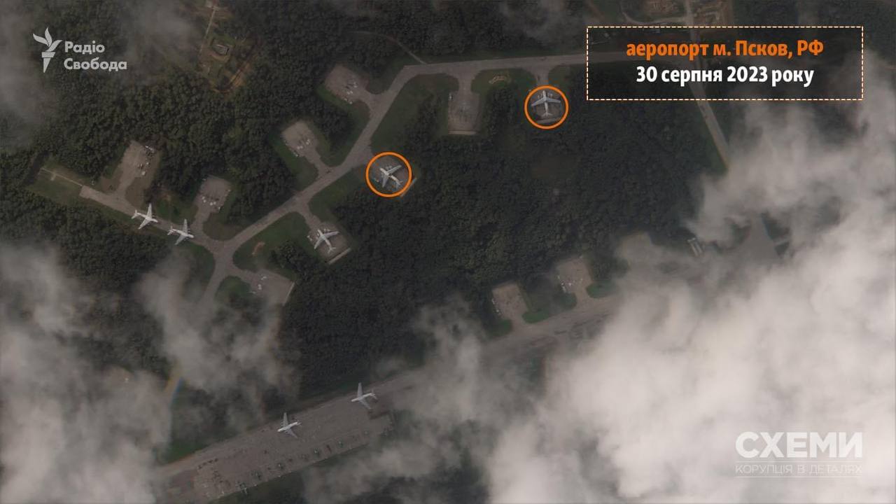 В сети появились первые спутниковые снимки после атаки украинских беспилотников на аэродром у Пскова. Согласно снимкам, повредили по меньшей мере 2 самолета.