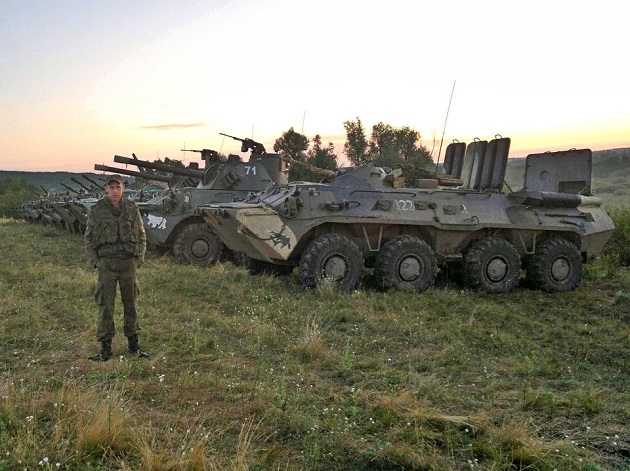"Ротная или батальонная тактич. группа 61-й ОБрМП РФ, воевавшая в Луганской области в августе-сентябре 2014-го года", - подписал он снимки.
