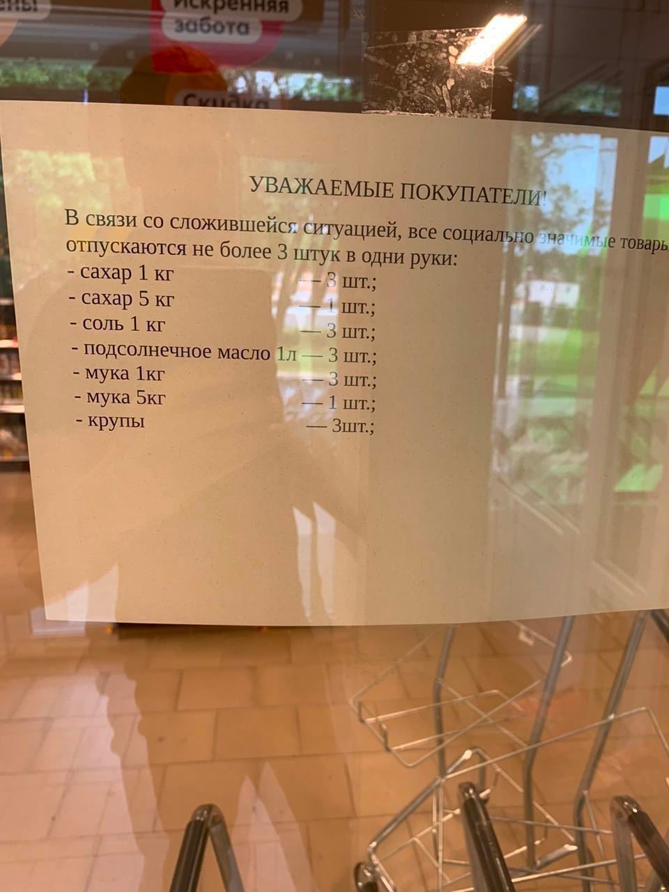 16:33 РосСМИ сообщают, что жители Ростова-на-Дону начали массово скупать продукты первой необходимости. В магазинах – пустые полки. Продажа товаров ограничена.