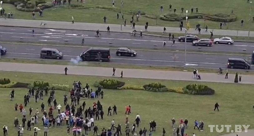 Очевидцы сообщают, что в Минске возле Стелы взорвалась одна светошумовая граната. Кроме того, несколько сотрудников применили газ из баллончиков.