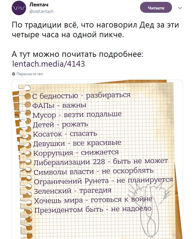 12:33 Путин в основном говорит о внутренних проблемах, бедности, индексации пенсий и выплат российским военным. О международных проблемах пока не говорит. Вообще "Прямая линия" в этом году, кажется, более сосредоточена на внутренних проблемах России, социальных проблемах, а не политической ситуации в России или на международной арене.