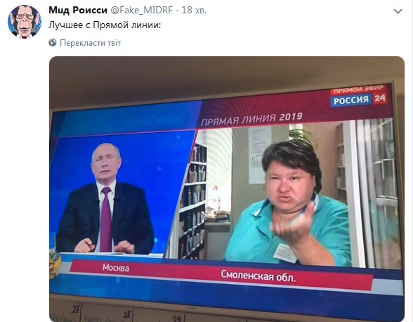 12:50 На "прямую линию" люди звонят и жалуются на зарплаты, медицину... Реакция Путина предсказуемая.