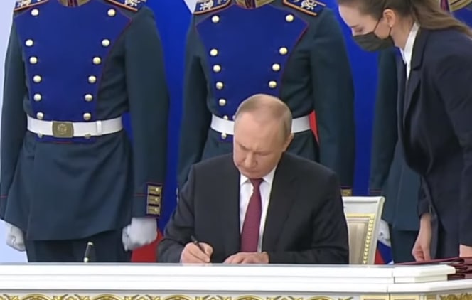 В итоге, Путин подписал четыре "документа" о принятии в состав РФ четырех новых "субъектов"
