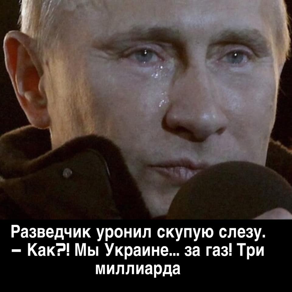 На карикатуре можно увидеть президента России Владимира Путина, который заливается слезами по поводу того, то пришлось "отстегнуть" кругленькую сумму, несмотря на все старания юристов "Газпрома" уйти от выплаты долга.