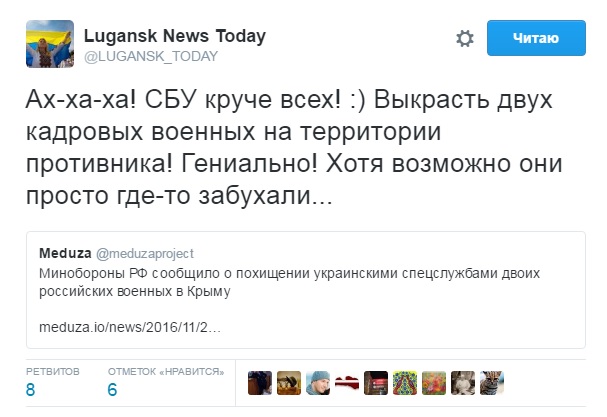 В свою очередь, как заявляют СМИ, в СБУ заявили о задержании на КПВВ "Чонгар" на административной границе с Крымом двух дезертиров, которые в 2014 году перешли служить в вооруженные силы РФ. В отношении них СБУ расследует уголовные производства по обвинениям в дезертирстве и государственной измене.