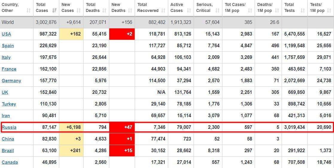 Это больше чем в Китае, где коронавирусной инфекцией по состоянию на утро 27 апреля заразилось 82 830 человек.