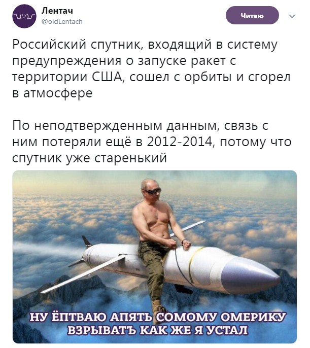 В свою очередь в командовании Воздушно-космических сил РФ заявили, что спутник "планово свели с орбиты", и он полностью сгорел в плотных слоях атмосферы над территорией Атлантического океана на высоте около 100 километров.