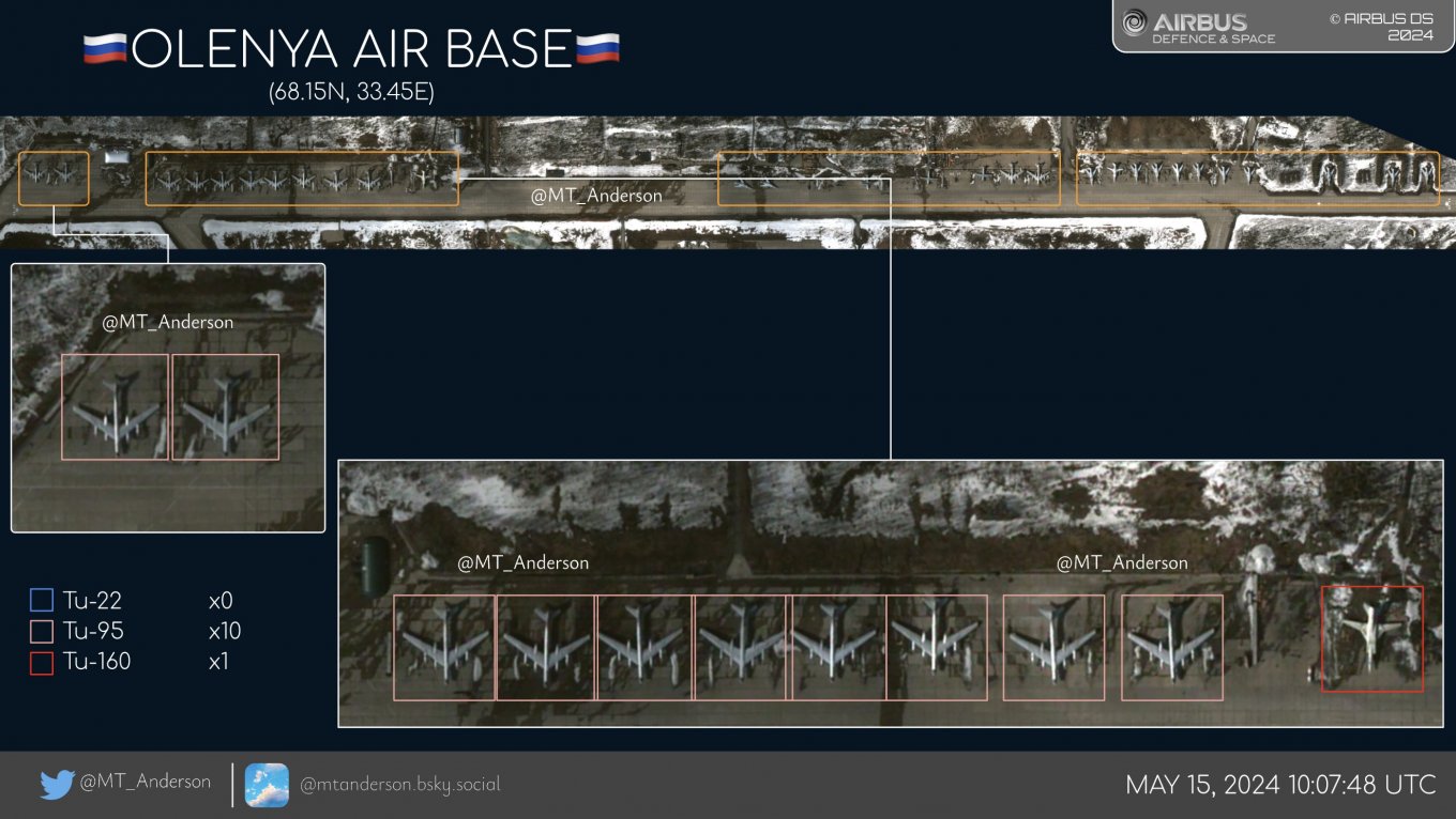 Важность аэродрома "Оленья" как ключевой базы для россиян подтверждается еще и тем, что в конце апреля на аэродроме "Моздок" находились только 6 единиц Ту-22М3.
