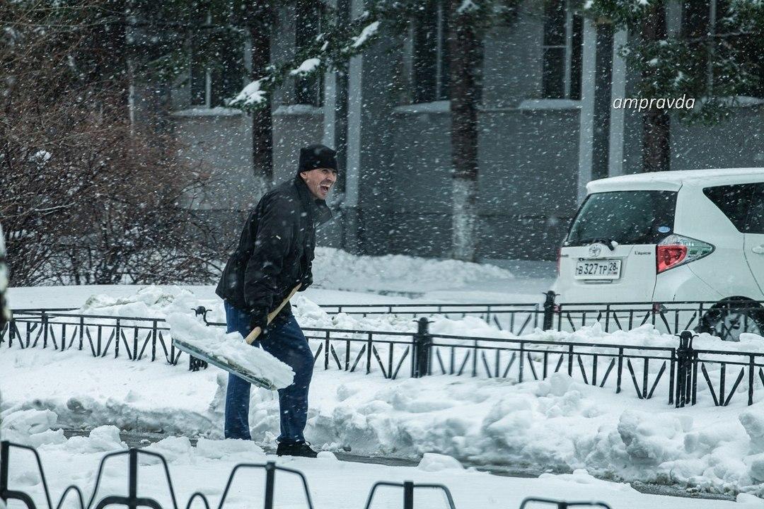По данным амурского Гидрометцентра, такого снегопада в этом регионе России не было последних 25 лет.