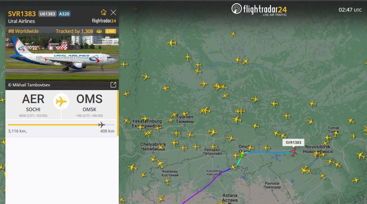 Самолет "Уральских авиалиний", совершавший рейс из Сочи в Омск, подал сигнал тревоги и не смог долететь до аэропорта из-за отказа гидросистемы.