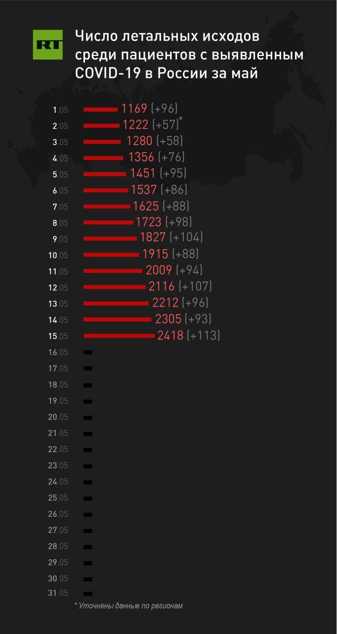 Всего в России с начала пандемии скончались 2418 пациентов с COVID-19.