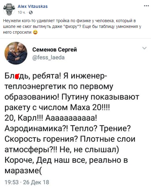 В сети высмеяли испытательный запуск российской ракеты комплекса "Авангард", оснащенной гиперзвуковым крылатым боевым блоком.