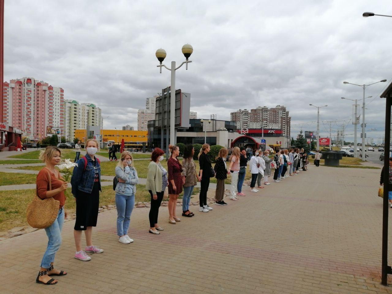 Тем временем на улицах беларуских городов появились "живые цепи", в которые выстраиваются женщины, которые требуют прекратить насилие по отношению к демонстрантам. Фото участниц этих протестных акций опубликовал Telegram-канал "Медуза".