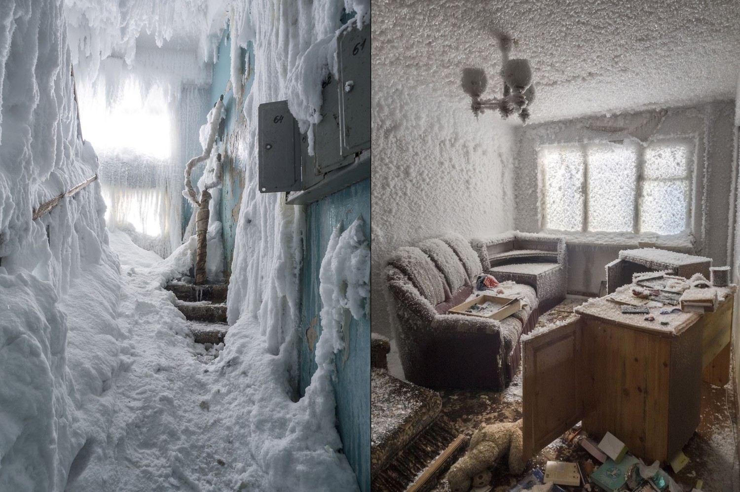 Британская фотограф Мария Пассер посетила поселок, расположенный к северу от Полярного круга на расстоянии 18 км от Воркуты (Республика Коми Российской Федерации) и сделала поразительные снимки заброшенных зданий, в которых теперь царит снег, лед и холод.