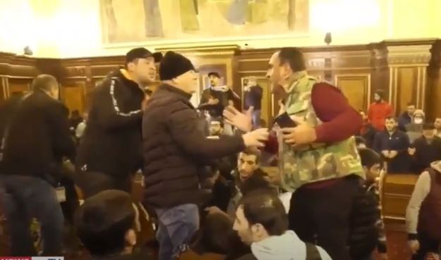 После того, как стало известно о соглашении о прекращении боевых действий, в Ереване начали собираться люди, которые ворвались в здание правительства и начали громить его изнутри.