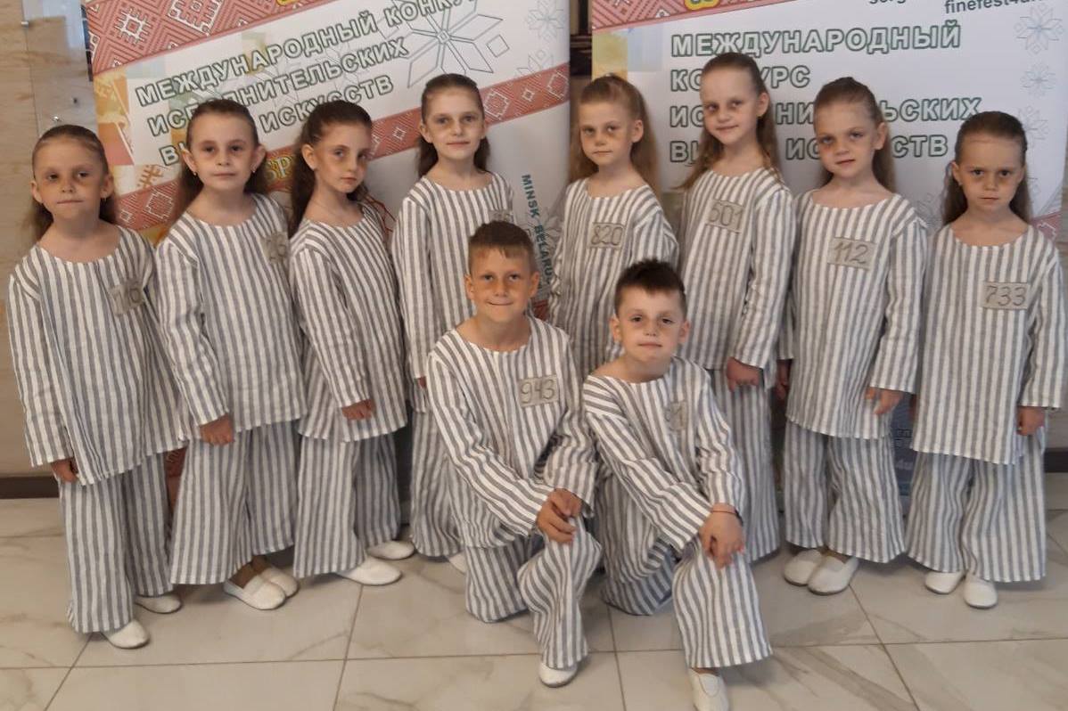 В Беларуси детский танцевальный коллектив "Звездочки" яслей – сада №3 города Ошмяны принял участие в конкурсе исполнительских видов искусств с хореографической композицией "патриотической направленности" "По вагонам" - пятилетние дети танцевали в тюремных робах.