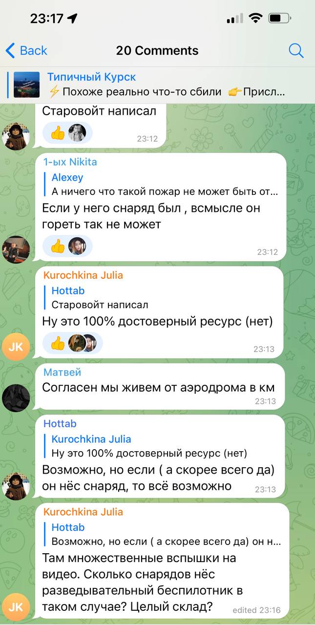 Однако, местные жители засомневались в такой версии, предположив, что такого мощного взрыва от сбитого летального аппарата быть не может. Позже, комментарии сомневающихся начали удалять.
