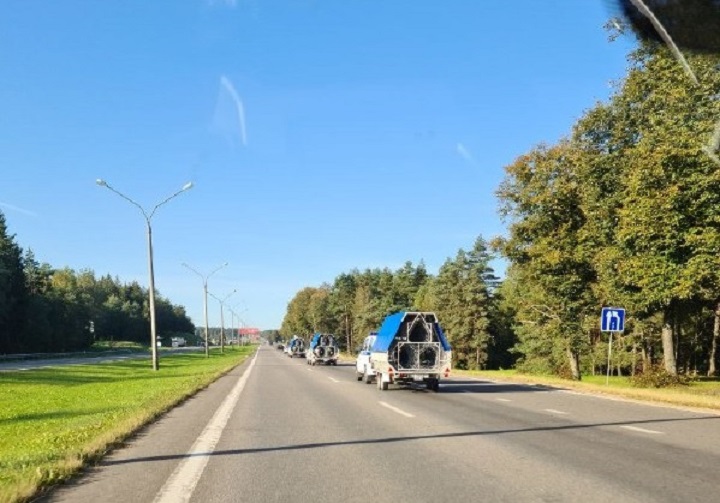 Колонну военной техники заметили под Минском утром, машины с колючей проволокой направлялись в сторону белорусской столицы из Уручья.