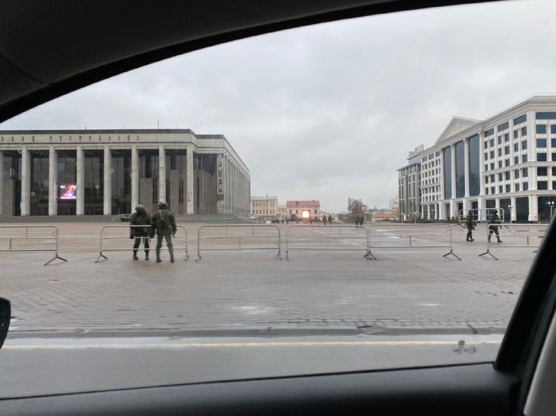 Отмечают, что утром 8 ноября на Октябрьской площади и площади Независимости уже появились ограждения.