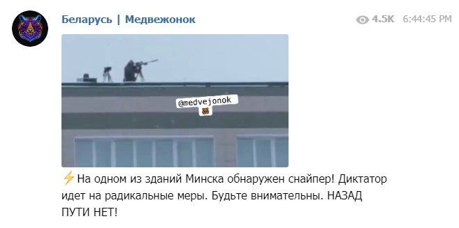 "На одном из зданий Минска обнаружен снайпер!" – сказано в подписи к снимку.