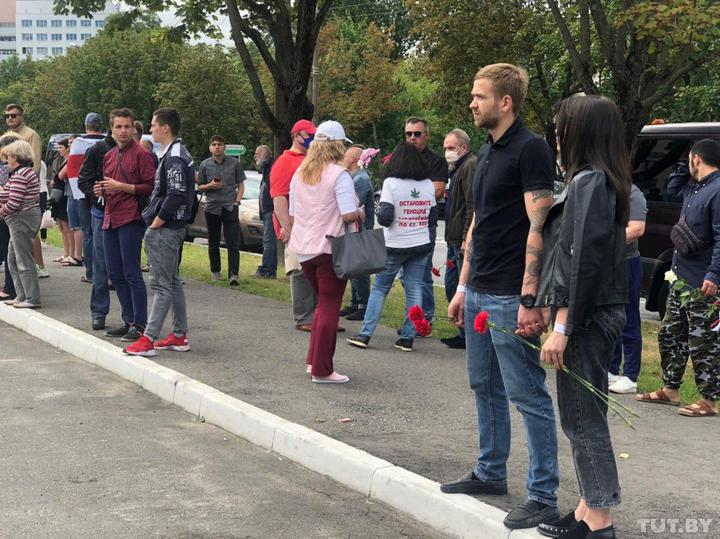 Однако на прощание пришло много минчан, которые выстроились по обе стороны улицы с цветами и бело-красно-белыми флагами. В частности, здесь присутствует экс-кандидат в президенты 2010 года, поэт и политик Владимир Некляев.