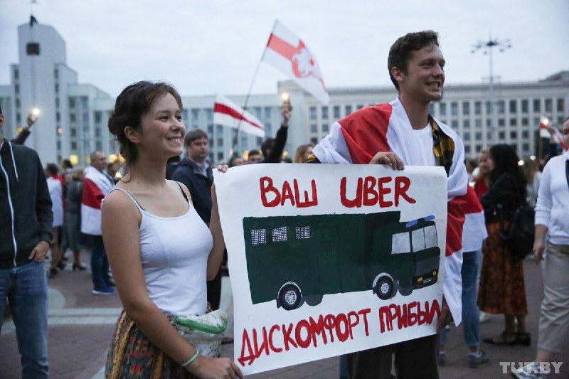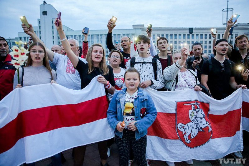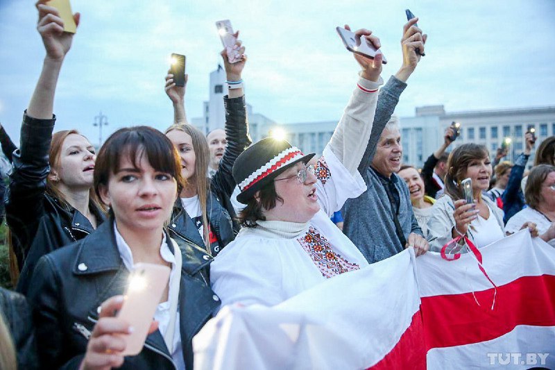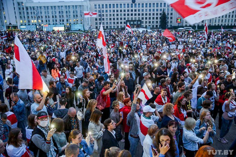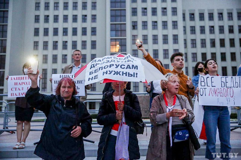 В четверг, 20 августа, в столице Беларусе Минске на площади Независимости собрались тысячи людей в поддержку протестующих рабочих.