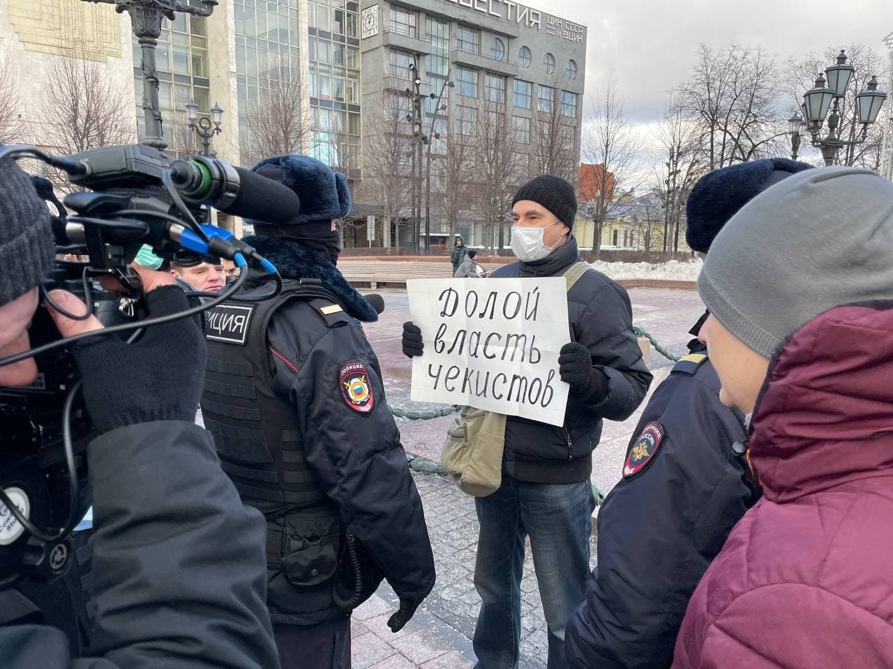 Инцидент произошел в воскресенье, 20 февраля на Пушкинской площади столицы РФ. Противники войны с Украиной вышли на площадь с плакатами, содержащими призывы прекратить боевые действия. На них было написано: "Руки прочь от Украины", "Долой власть чекистов", "Россия, не трогай Украину", "Нет войне с Украиной", "Свободу украинским политзаключенным", "Школы и больницы вместо бомб и снарядов".