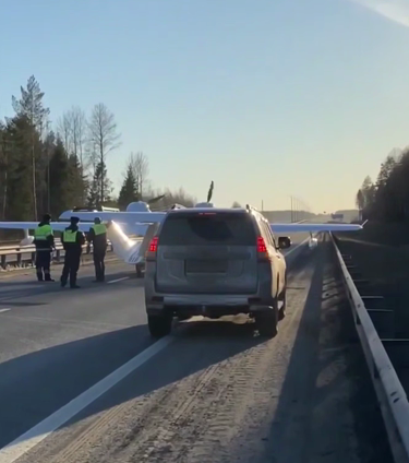 В Вологодской области РФ самолет-амфибия Л-147М экстренно сел посреди автомобильной трассы.