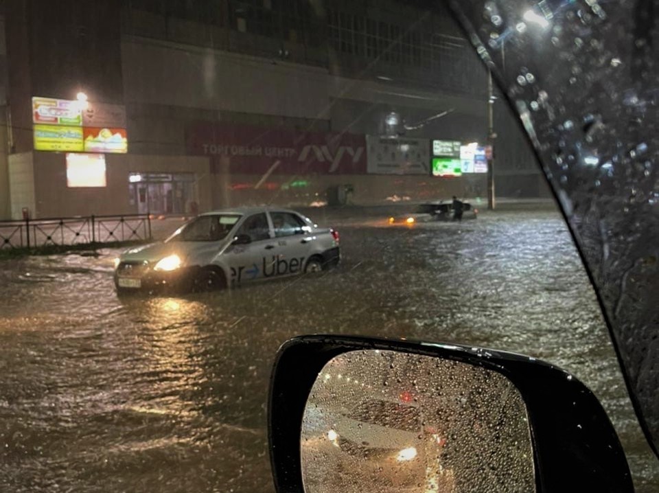 В Вологде РФ прошел настолько сильный ливень, что затопил весь город и заставил машины плавать.