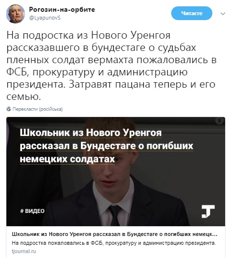 Российский школьник в Бундестаге просто сказал, что не все немецкие солдаты были фашистами по убеждению, и поведал о нечеловеческих условиях в лагерях для военопленных.
