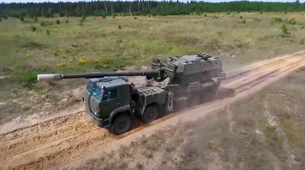 Россияне на специальном полигоне в Нижегородской области провели испытания новой версии российской 152-мм самоходной артиллерийской установки "Коалиция-СВ" на базе автомобиля КамАЗ-6550.