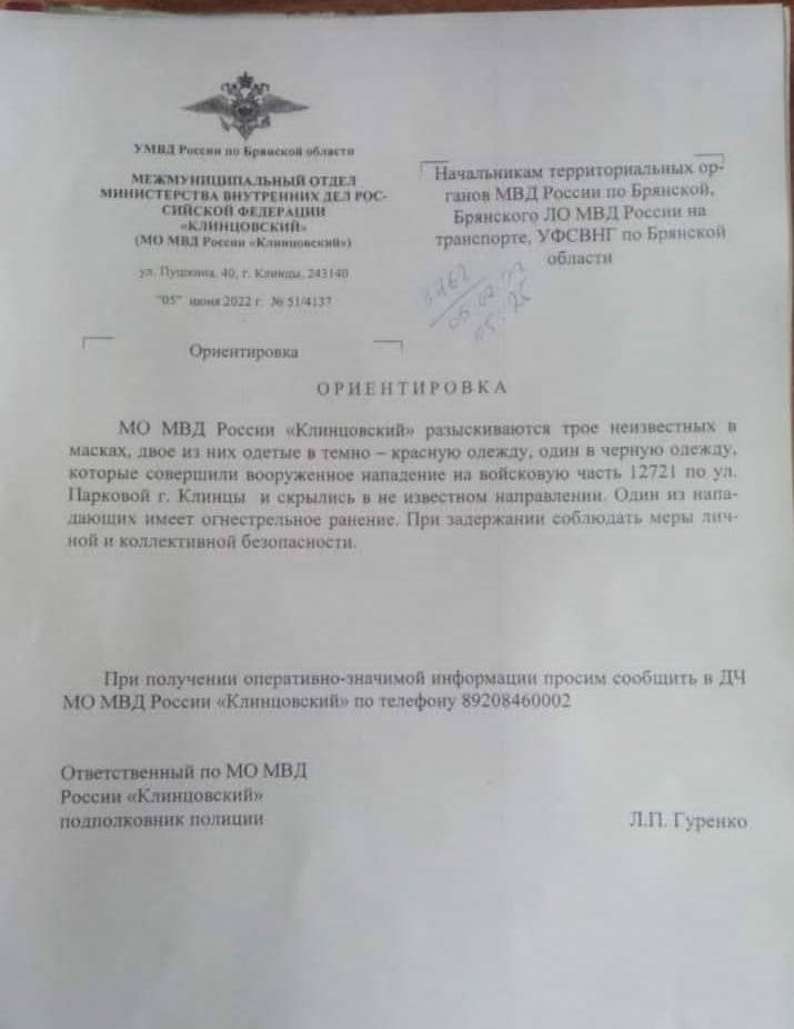 В городе Клинцы Брянской области, что находится на границе с Черниговской, трое мужчин совершили нападение на воинскую часть.