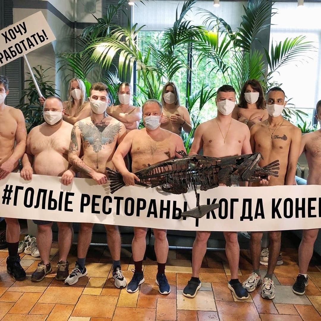 Сотрудники ресторанов, баров и кафе в России присоединяются к флешмобу под названием #голыйголод, в рамках которого они фотографируются обнаженными и требуют возобновить работу своих заведений.