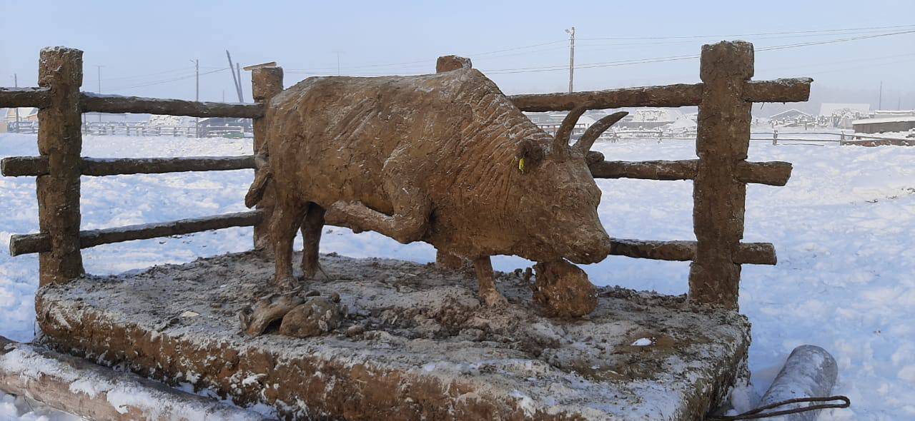 В Якутии (Российская Федерация) местный мастер Михаил Боппосов создал из навоза символ наступающего 2021 года по восточному календарю - скульптуру Быка, из ноздрей которого идет пар.