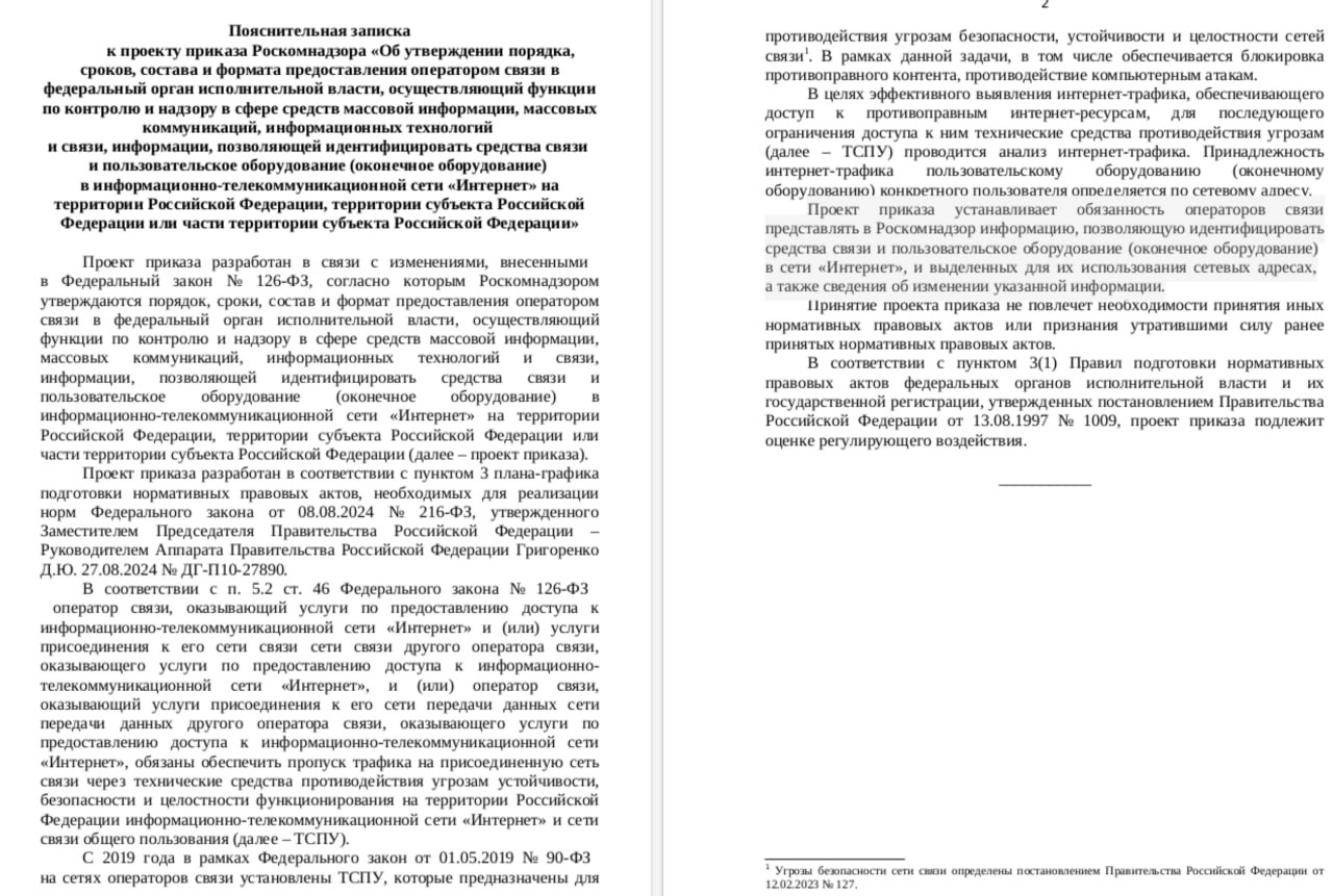 В ведомстве рассчитывают получить доступ к таким данным от операторов связи в течение трех месяцев с даты вступления в силу документа. Ожидается, что в течение 15 дней операторы будут предоставлять властям данные о средствах связи и оборудовании клиентов: сетевых адресах, местах проживания, номерах технических средств и IP-адресах.