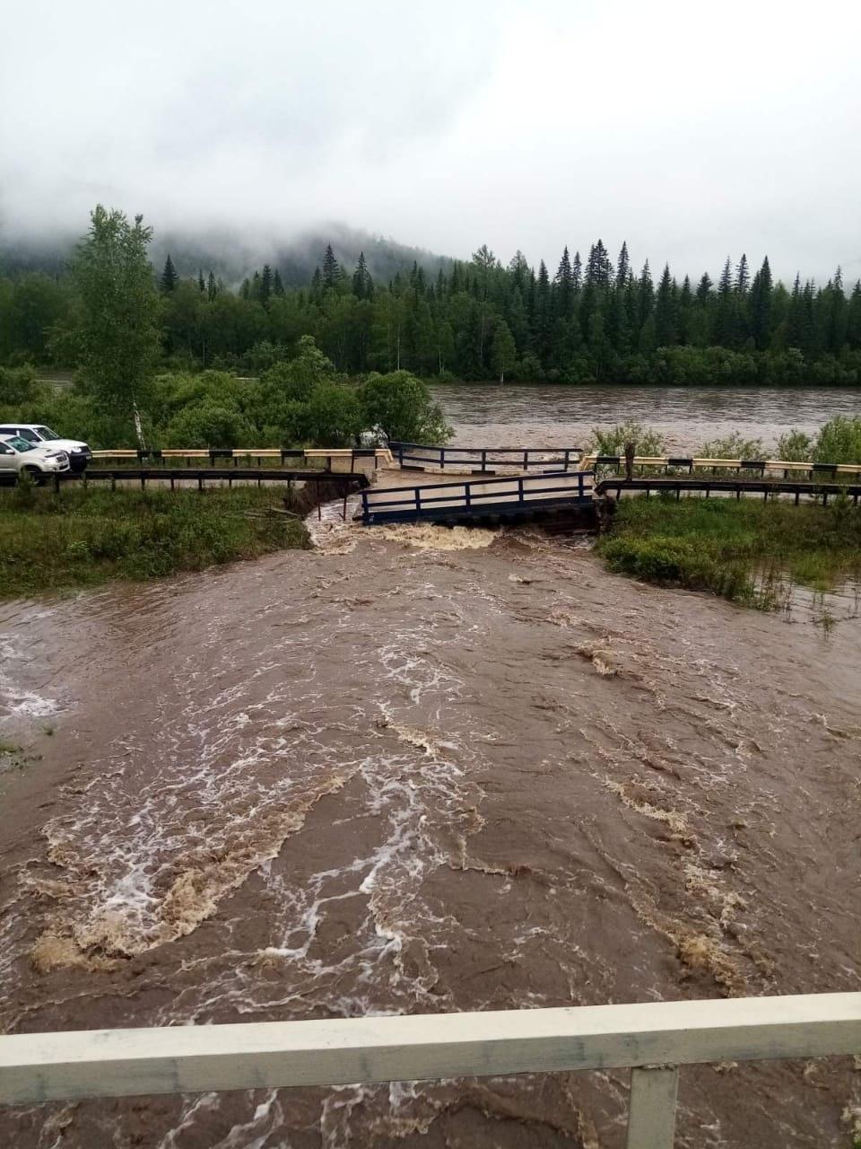 Также от паводка пострадал еще один мост в Красноярском крае - пострадала переправа через реку Сейба на 211 километре трассы "Саяны". Мост закрыт для проезда.