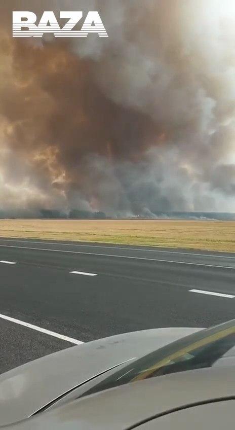 Сообщается, что пожар начался на заброшенных складах расформированной ракетно-артиллерийской части. Стоят они в поселке Шелемишево. Местные говорят, что слышат разрывы боеприпасов – предварительно, они остались в помещениях. По словам очевидцев пожар разгорается все сильнее