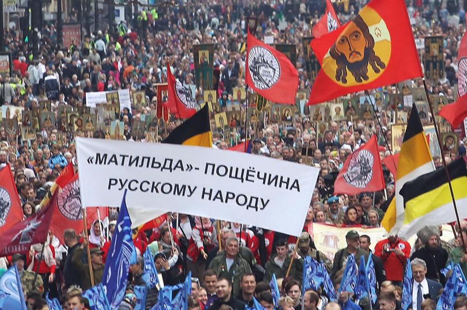 Судя по опубликованным фотографиям, на улицах собрались несколько тысяч человек, которые выразили свое недовольство выходом фильма об отношениях российского императора Николая II с балериной Матильдой Кшесинской.