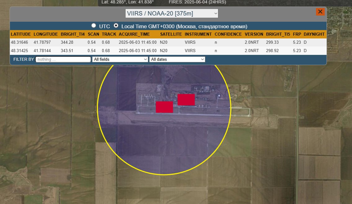 "Пожары случились впритык к важным объектам - склад ГСМ и площадка подготовки самолетов. Об атаках дронов или ракет не сообщалось", - сообщило издание.