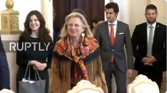 В сети высмеяли наряд министра иностранных дел Австрии Карин Кнайсль, которая прибыла на переговоры в Москву в платке.